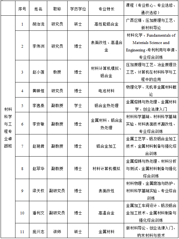 Ⅰ、材料科学与工程专业卓越班: