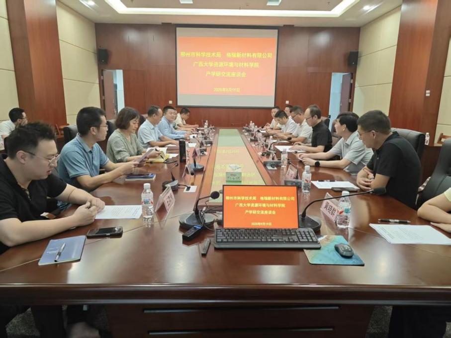 9月19日上午,柳州市科学技术局副局长陈新连带队,携同广东格瑞新材料有限公司总经理李龙华一行,莅临我院开展产学研合作交流座谈。会议由学院副院长王欣鹏主持,学院党委书记沈大强、副院长汤宏群及各系教师代表参加。
