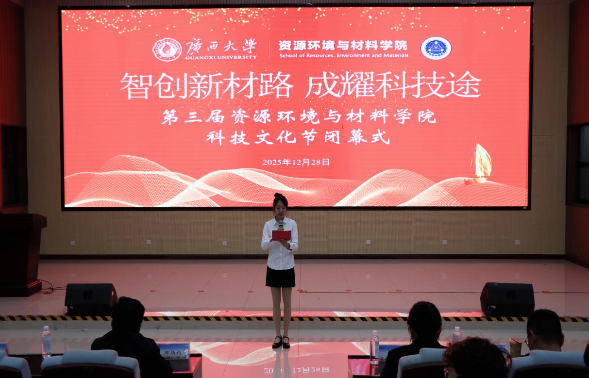 邹炳锁对本届科技文化节的成功举办表示热烈祝贺,并向参与组织与活动的师生致以衷心感谢。他强调,学院始终秉承“勤恳朴诚、厚学致新”的校训,坚持为国家和广西发展培养高素质专业技术人才。他指出,专业知识是青年学子服务社会、助力国家富强与民族振兴的重要基础。他勉励同学们不忘初心、牢记使命,保持向上向善的追求,不断提升科研与创新能力,勇攀学术高峰,努力成长为符合时代需要的新工科创新型人才,为中华民族伟大复兴与国家建设发展贡献青春力量。