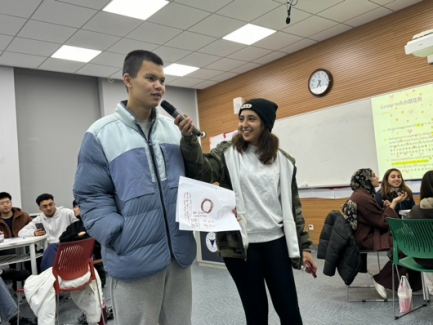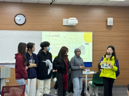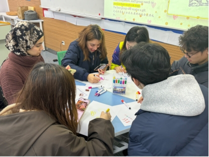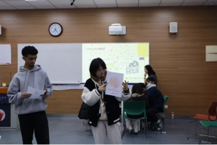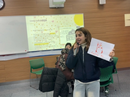 在程萌老师、陈荣老师和主持人朱吴桐雨的组织下,将所有同学分为8个6-7人的中外小组,进行节日甜食的绘画和交流活动。中国学生与国际生相互学习特色“甜味”食品的名字及其寓意等。最后,每组派出两位学生上台展示所学。并由程萌老师评出第一名,获得了主持人朱吴桐雨准备的传统“甜味”—定胜糕。