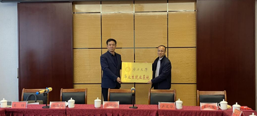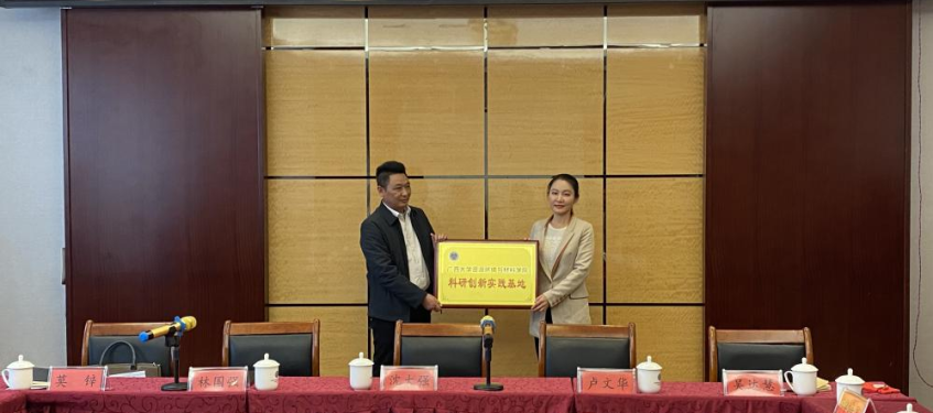 3月9日,我院一行5人与广西南丹县三鑫环境治理有限公司举行“校企合作产学研基地授牌仪式”并座谈交流,南丹县委常委、统战部部长卢文华,县人民政府副县长林国强出席本次会议,县自然资源局、发展改革局、工业和信息化局、人力资源和社会保障局、南丹生态环境局等单位负责人参加本次活动。会上,沈大强向与会人员介绍学院建设发展情况,他希望今后校企政三方能积极发挥党建引领作用,建立联合攻关合作机制,加大成果转化力度,更好地服务地方经济。各方就合作事宜进行交流协商后,沈大强为南丹县三鑫环境治理有限公司赠授“广西大学毕业生就业基地”牌匾,吴达慧为该公司赠授“广西大学资源环境与材料学院科研创新实践基地”牌匾。