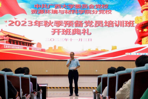 11月3日,我院2023年秋季预备党员培训班开班典礼在学院123报告厅举行。学院党委书记沈大强、培训班班主任范剑辉老师出席典礼,培训班全体学员参加本次开班活动。