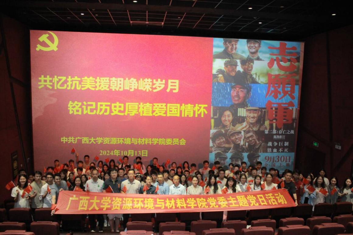 为弘扬爱国主义精神,增强历史责任感与使命感,10月13日下午,我院党委组织开展“共忆抗美援朝峥嵘岁月,铭记历史厚植爱国情怀”主题党日活动,共同观看纪念抗美援朝战争胜利红色电影《志愿军:存亡之战》。学院党委书记沈大强,党委副书记、纪委书记吴达慧,以及院教工党支部、学生党支部党员代表参加活动。