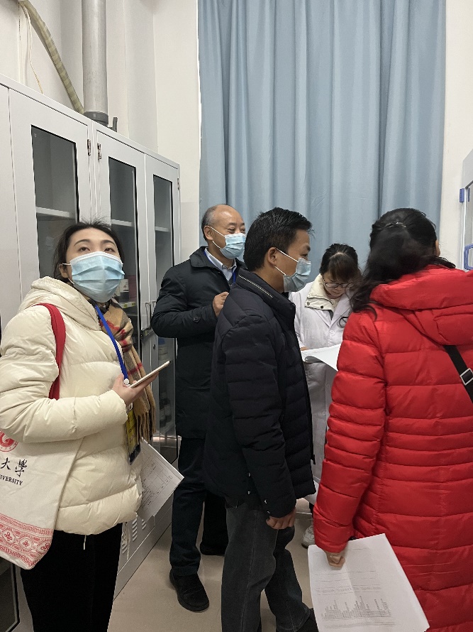 检查组说明了检查要求后,首先听取学院党委书记沈大强和副院长穆枭的工作汇报,检查学院实验室安全相关档案。沈书记和穆副院长重点汇报了在疫情防控常态化的背景下,我院安全管理的相关举措、安全教育的培训落实、假期安全监控的四线值班制度等,从各方面保障实验室安全的经验、做法。报告了寒假期间、开学以来学院书记、院长带队组织的多次学院检查。学院高度重视,采取多项措施确保安全责任落实到位、落实到人、贯穿全部环节,不留任何隐患漏洞。会上还特别汇报了学院趁寒假期间实验室使用较少的机会,专门邀请了专业的实验室安全检验公司对学院所有的实验室进行安全评估,形成评估报告的事项,后续我院将按照报告要求进行逐项落实整改。同时也希望学校加大实验室智能化管理、合理改造以及安全培训教育等工作的支持力度。听取汇报后,检查组一行对规章制度、危化品及其他危险源、安全设施、环境卫生等方面进行实地检查和指导。